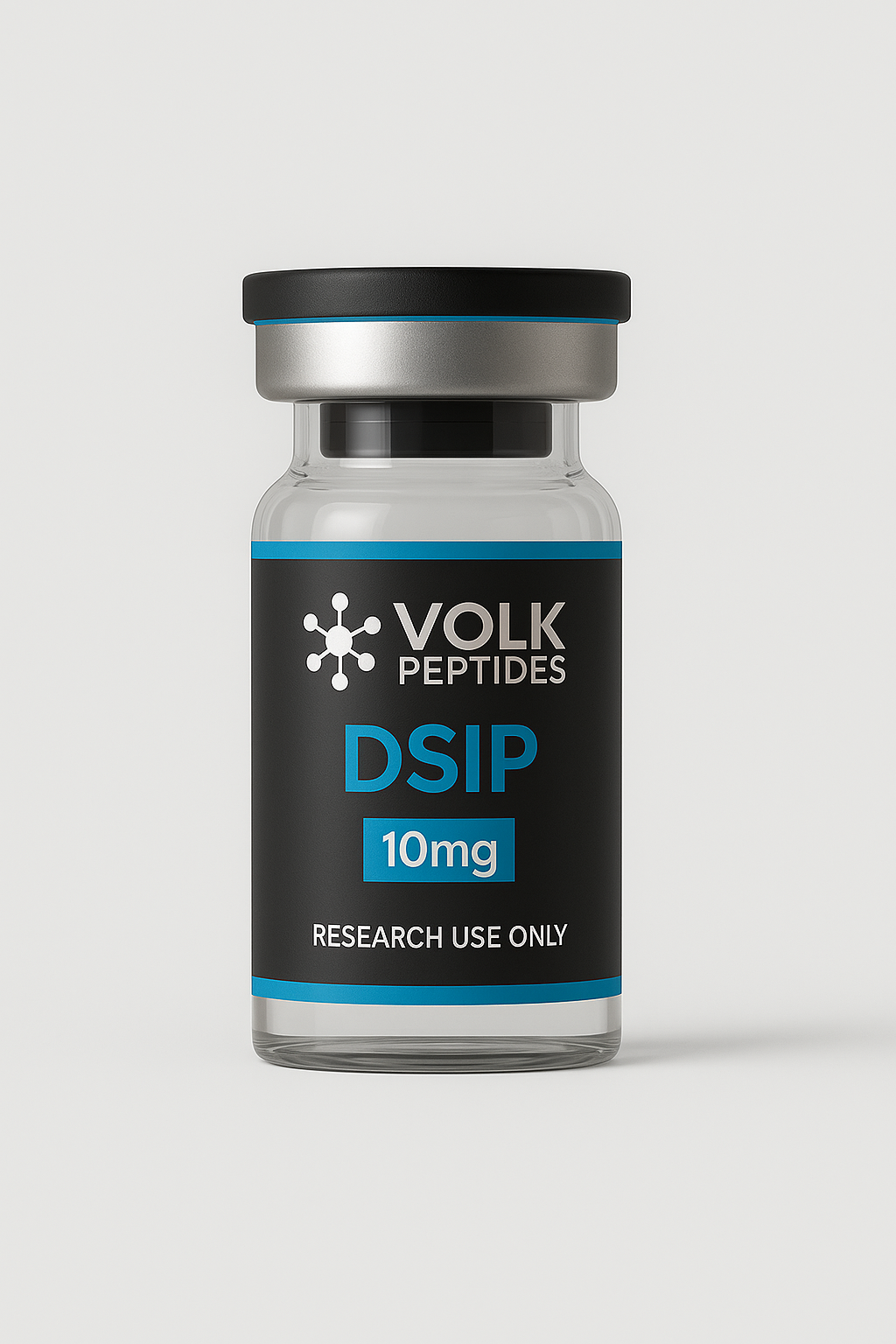 DSIP, or Delta Sleep–Inducing Peptide, is a synthetic neuropeptide studied in controlled research settings for its interaction with central nervous system signaling pathways. Preclinical investigations focus on its observed activity related to sleep-wake regulation, stress response, and neuroendocrine modulation, including potential interactions with circadian and hormonal signaling mechanisms. Ongoing research continues to examine its stability, receptor interactions, and experimental profile in comparison to other neuroactive peptides. For research use only. Not intended for human consumption, medical, diagnostic, or therapeutic purposes.